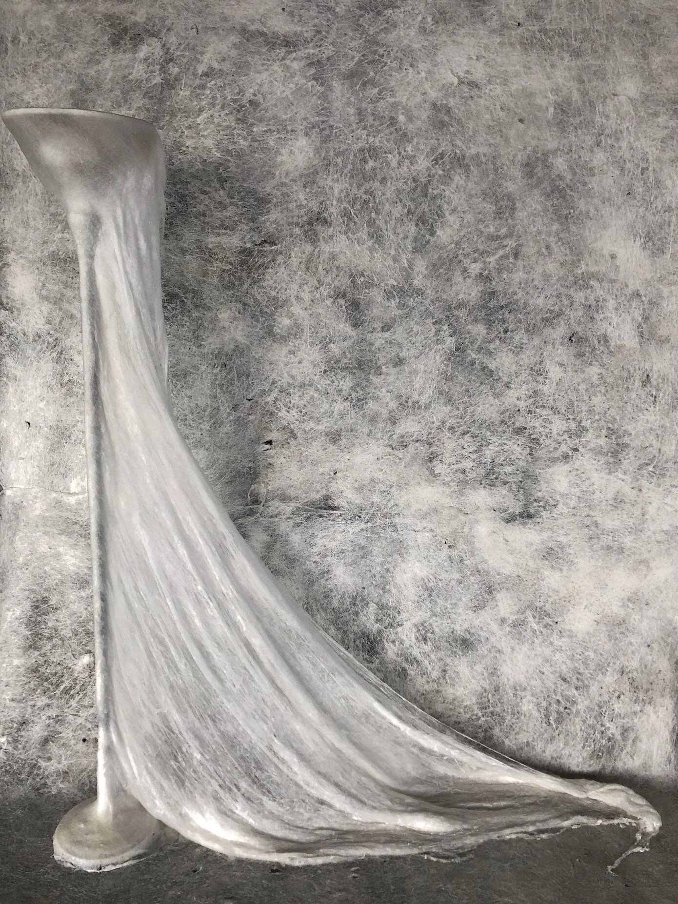 Part of Second Skins, The Havisham Series is a reflection on aging, isolation, and the intersection of masculine and feminine materials. Inspired by the recluse bride of Charles Dickens’ Great Expectations, found furniture is covered in hot melt, feathered by pressurized air, and built up into a lacy textile.